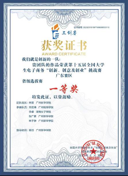 第十五届全国大学生电子商务挑战赛广东赛区一等奖