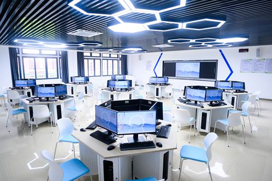 在实训条件上,产业学院立足行业前沿技术需求,累计建成5大智能化实训室,包括:人工智能实训室、大数据实训室、AI全流程实训室、智能机器人实训室和智能物联网实训室。配套搭建智能机器人虚拟仿真系统、人工智能实验室和AI全流程实训平台,构建起技术支撑-场景实训-产业融合三位一体的实践育人体系,着力培养符合产业需求的应用型人才。